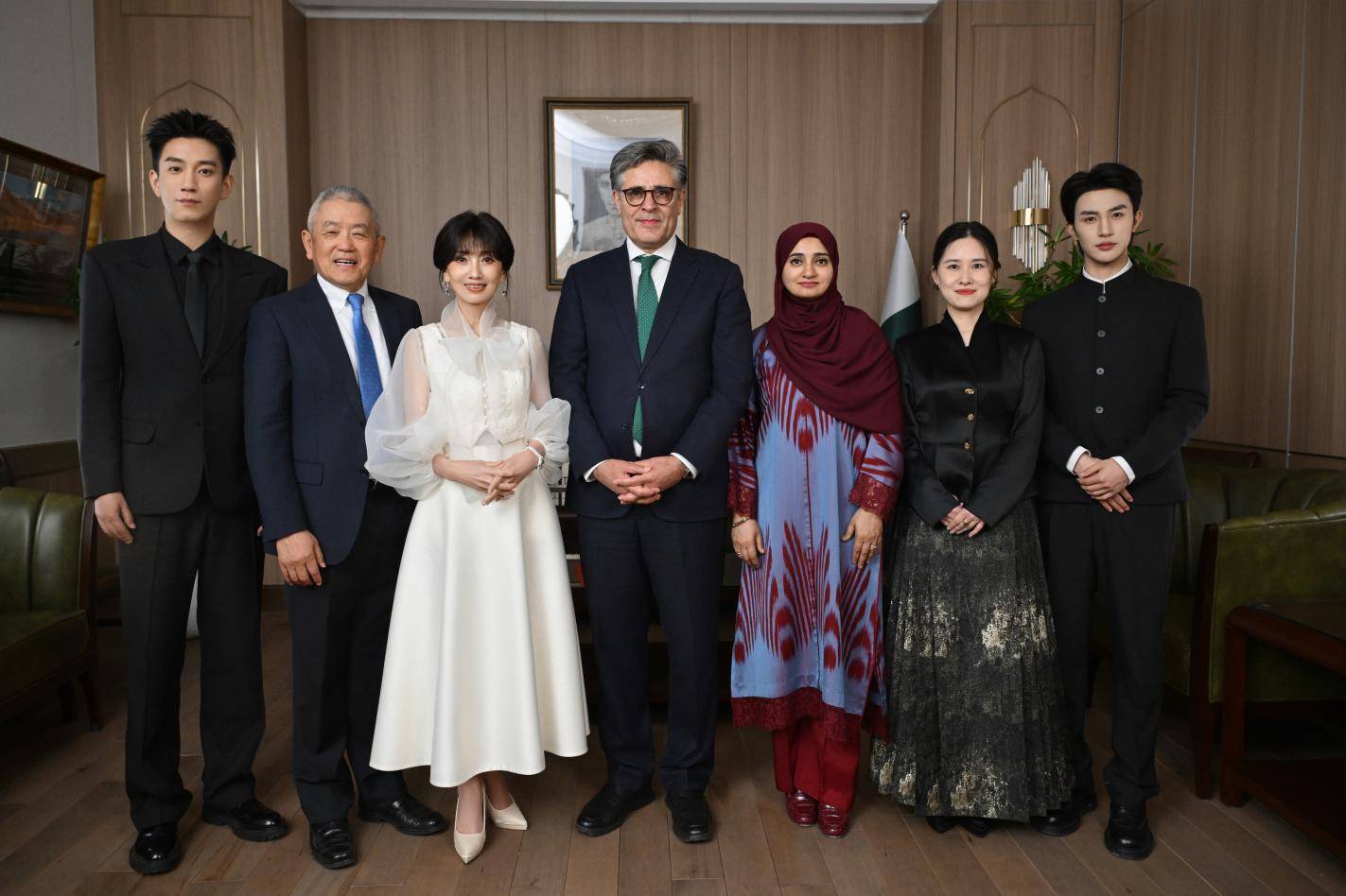 (图:从左至右,王子奇、宋荣华、赵雅芝、巴基斯坦驻华大使卡里尔·哈什米、大使夫人、傅缤卉、张翅)
