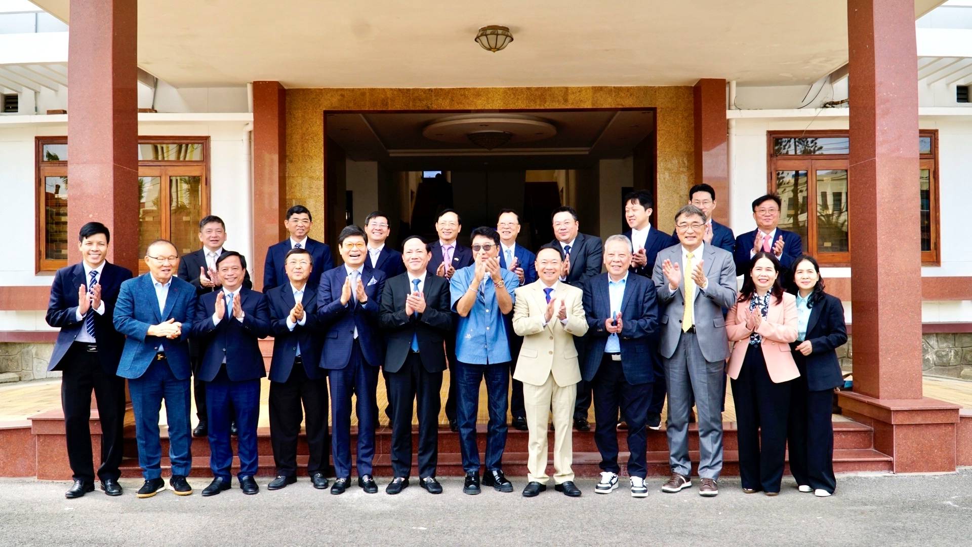 会议现场,包括 Blooming Sky有限公司(Blooming Sky Co., Ltd.)共同董事会主席李秀满制作人、共同董事会主席张镇赫,以及越共中央委员兼嘉莱省省委书记Tái Đại Ngọc、嘉莱省人民委员会主席Phạm Anh Tuấn 等主要领导出席。越南「足球英雄」朴恒绪(Park Hang-seo)教练也到场参加。
