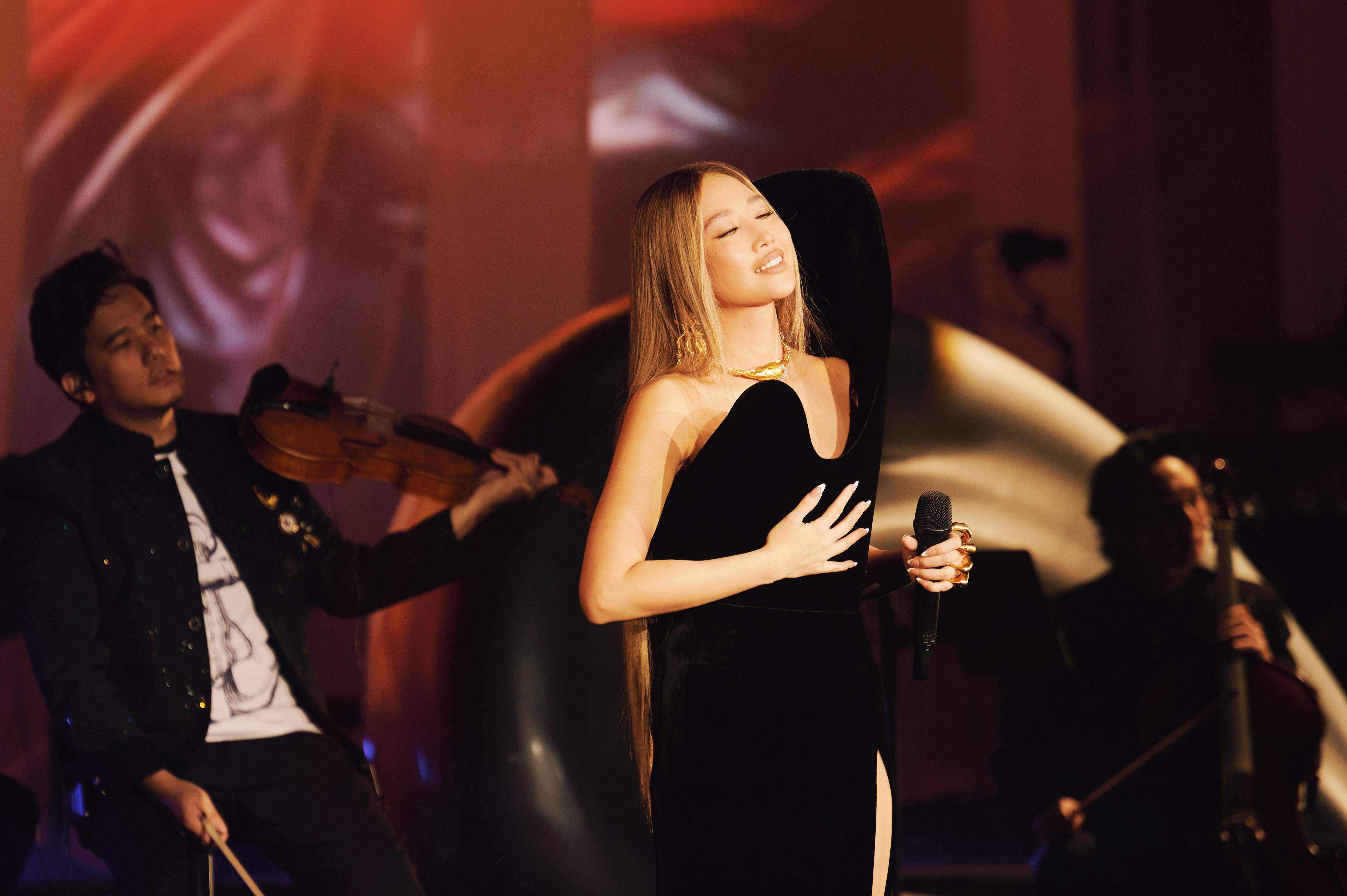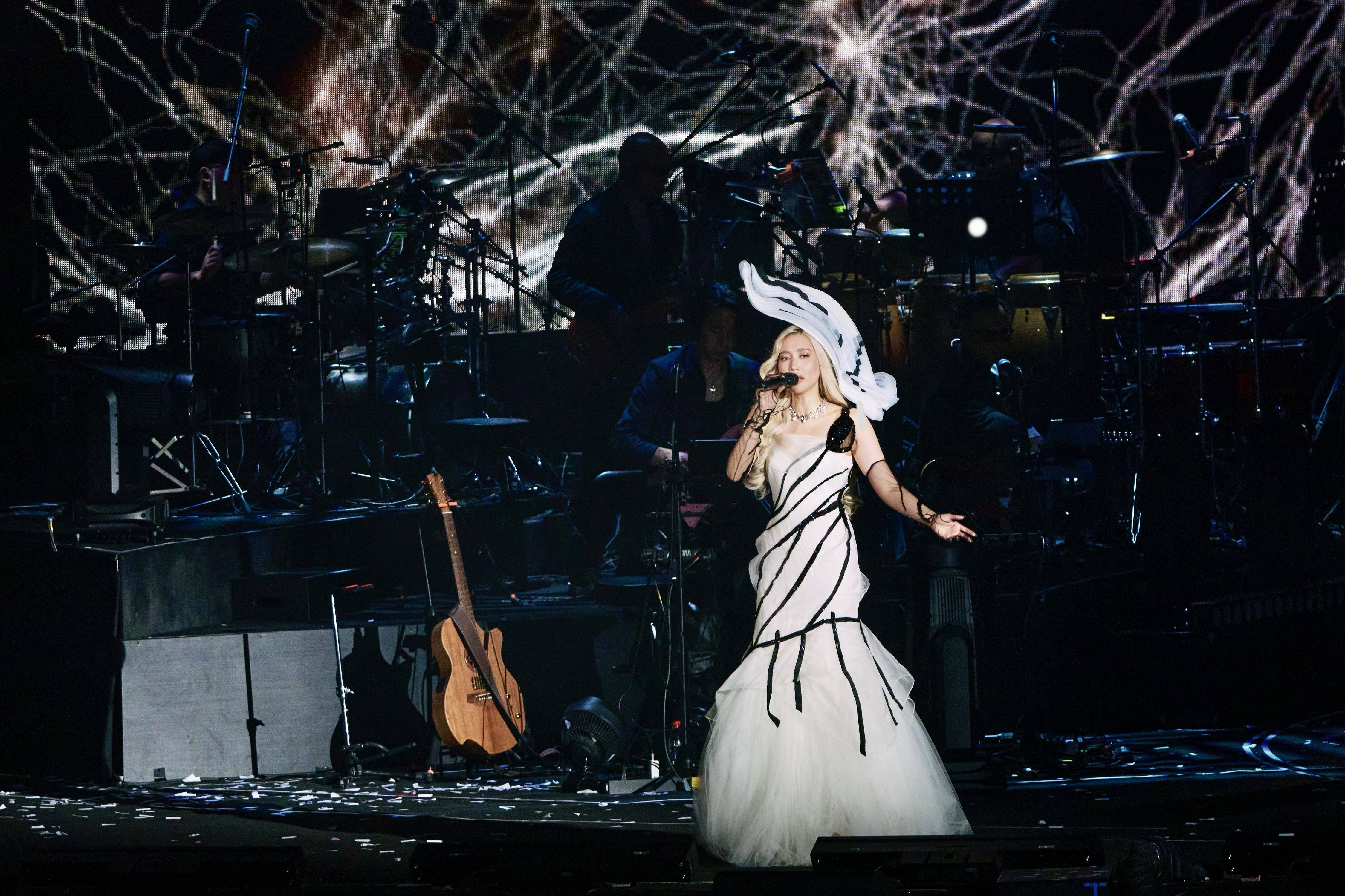 对于因为共同的爱而从各地奔赴无锡的歌迷而言,「歌迹Journey」的主题不仅是一场关于演出的旅程,还是一场充满二十年共同成长印记的温暖回溯,连续的音乐篇章,增添了更深层的叙事与情感层次。除了VJ视觉的震撼,A-Lin风格多元的高定造型,亦是她舞台艺术的重要延伸。第二套礼服来自于百年传奇Schiaparell,以耗时800小时的巴黎手工高定,不规则的曲线设计,恰到好处地贴合人体曲线之美。作为见证过不少国际巨星历史性时刻的品牌,Schiaparell为A-Lin「歌迹」设计的黑色礼服,让演出具备了红毯盛事的仪式感,加之A-Lin如CD般甄享的歌声,使得观众迅速沉浸于第二章节细腻的情感选曲中。